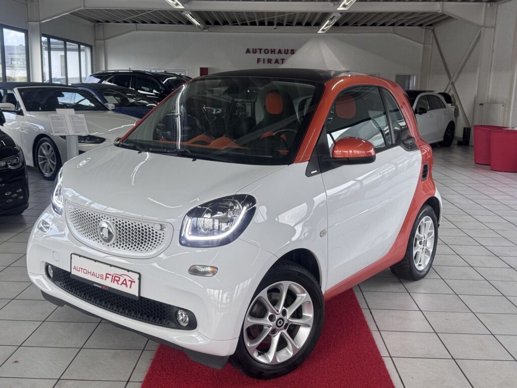 Smart fortwo coupe passion Navigation Sitzheizung Alufelgen Ausstattung Navigationssystem Sitzheizung vorne Klimaautomatik Leichtmetallfelgen 15 Zoll LEDTagfahrlicht Bremsassistent LED und SensorPaket Cool und MediaPaket ISOFIXKindersitzbefestigung Direktlenkung Sitzbezug Stoff schwarz orange Lederlenkrad Fensterheber elektrisch vorne Innenausstattung Stoff BluetoothTelefonSchnittstelle Tageskilometerzähler Radio Airbags ABS Zentralverriegelung mit Fernbedienung Geschwindigkeitsregelung Kristallweiss Aussenspiegel elektrisch verstellbar Nebelscheinwerfer Schadstoffklasse Euro 6 Sonnenblende mit Spiegel […]